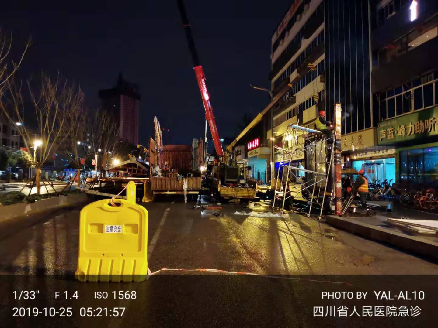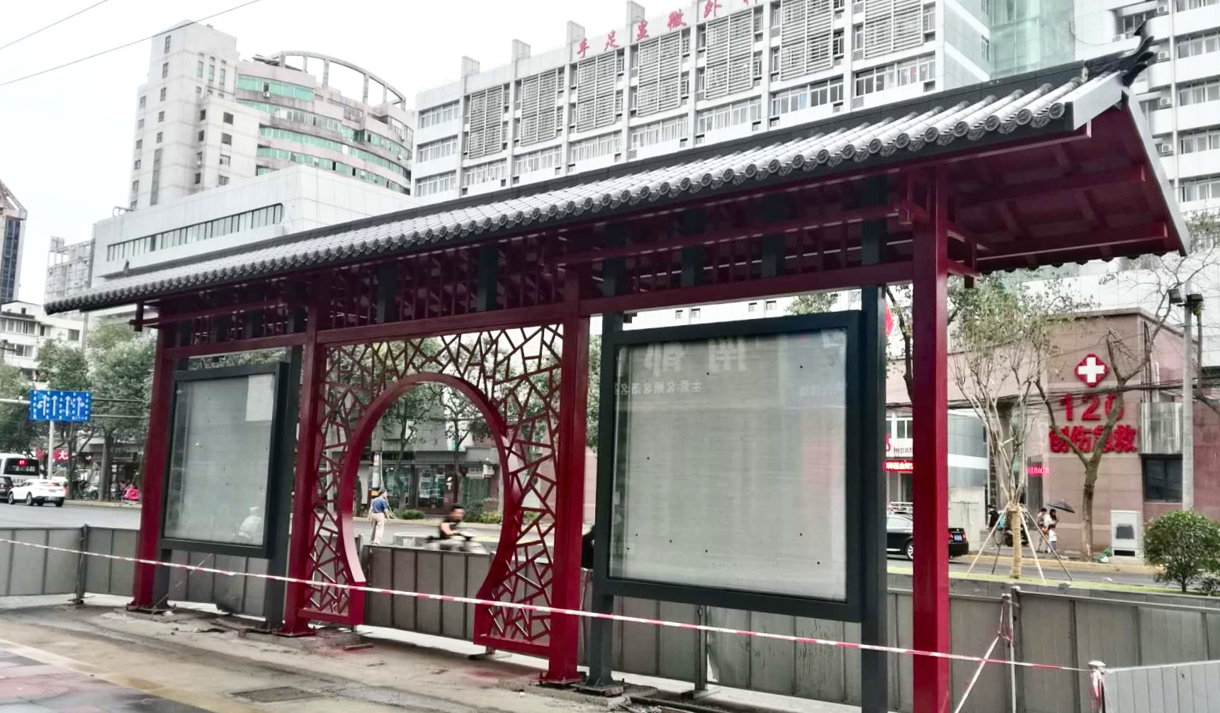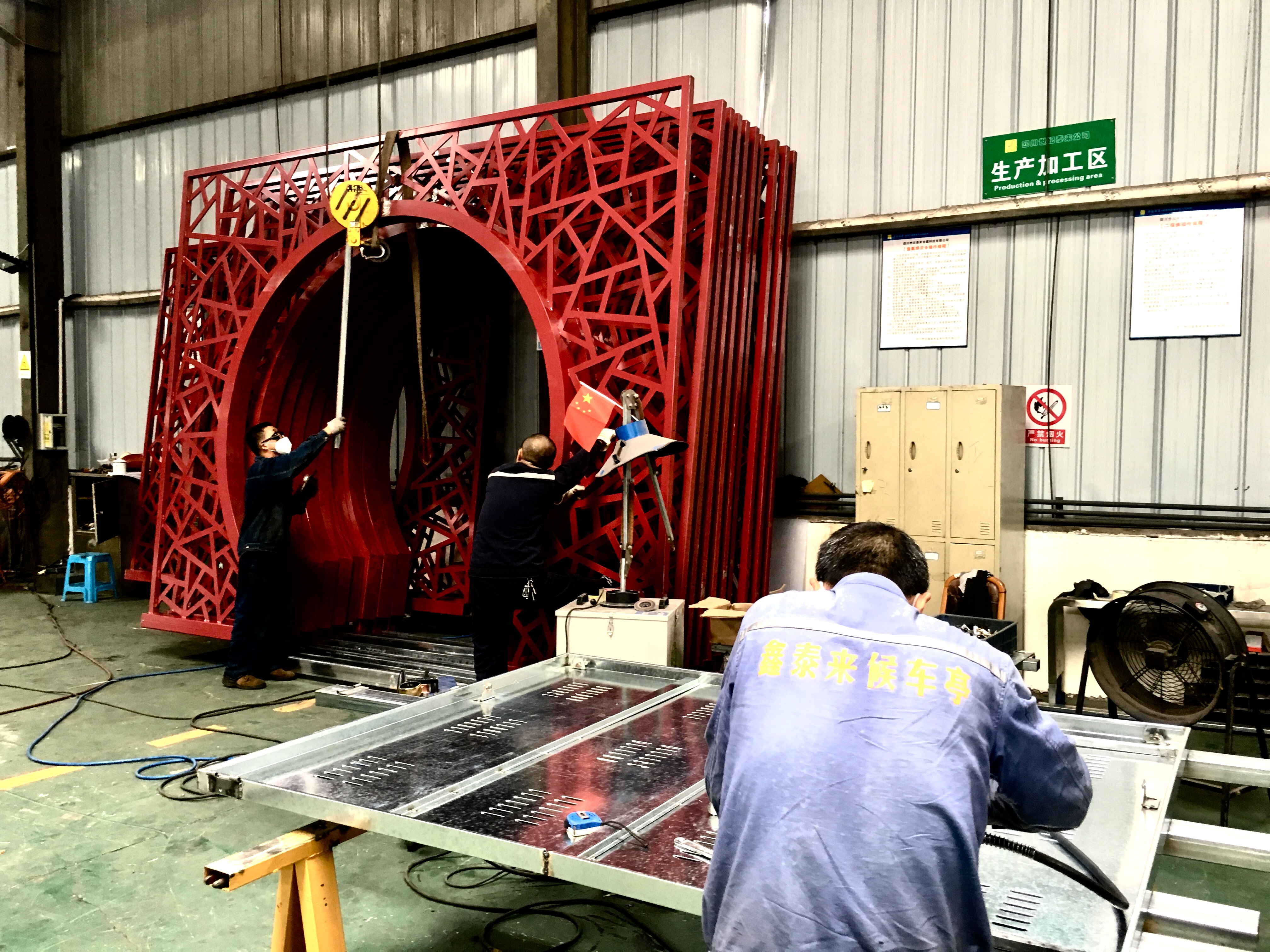 成都市一環道路綜合整治工程進行中,因現場車流量巨大等諸多不利因素,導致我司公交站臺的安裝工作全部在夜間施工完成。高效率的人力計劃和安排布署,在工程部精兵強將通力配合下,持續每夜兩座的進展速度,一座座高大的仿古公交站臺拔地而起,讓早起的當地市民驚訝不已 ,紛紛贊嘆它的壯觀和神速。