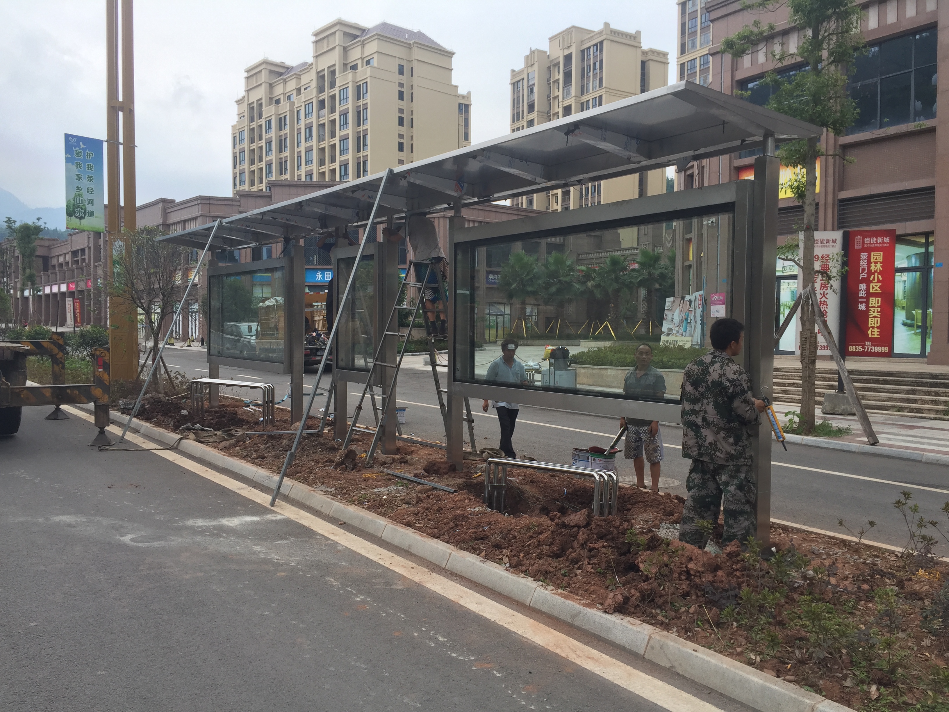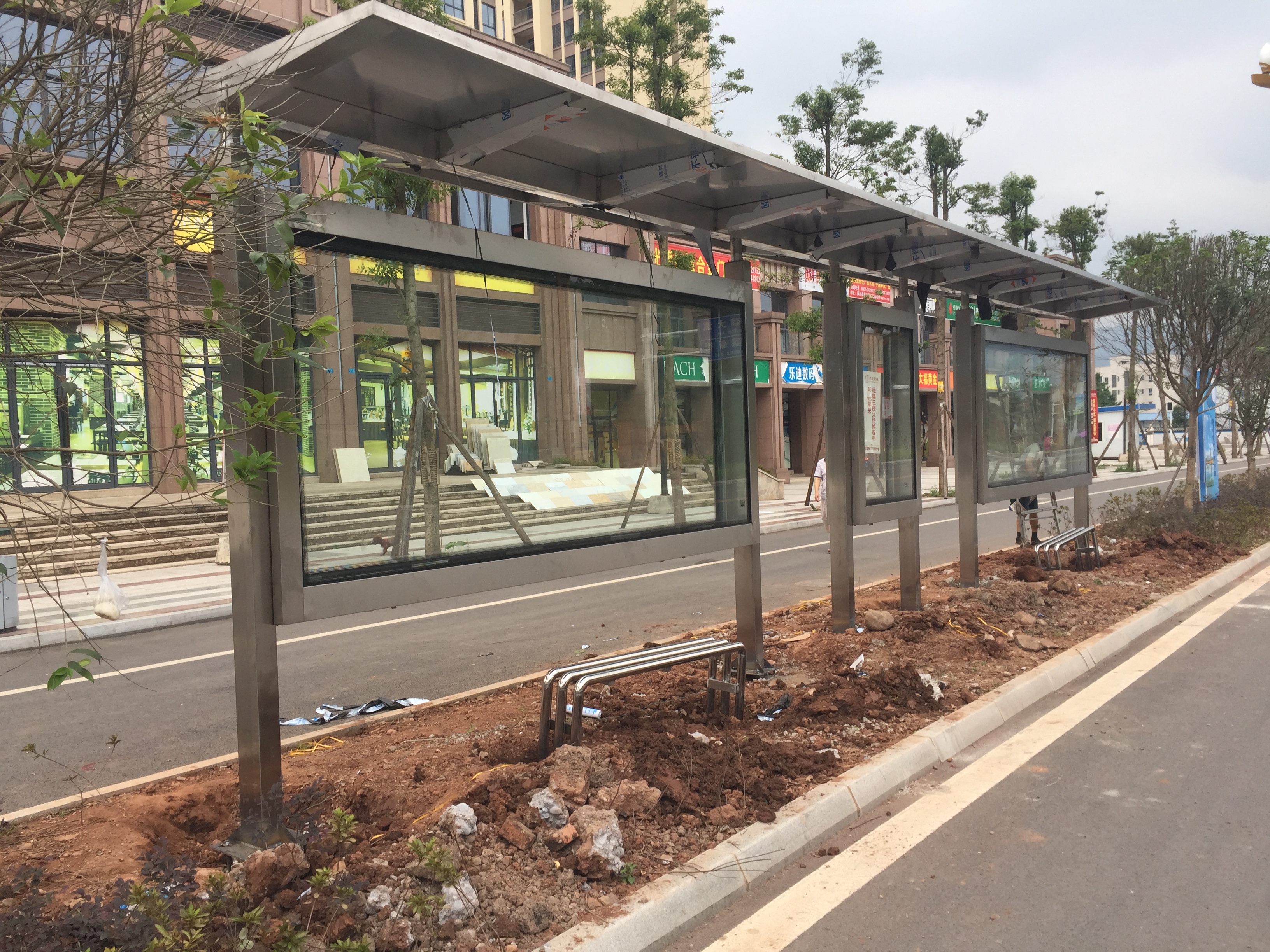 我公司中標承建的雅安市滎經縣76座公交站臺改造項目已經全部完工,通過驗收交付使用。該站臺全部采用不銹鋼材質,頂棚以當地有名的“鴿子花”為logo, 為旅游興縣營造良好的環
